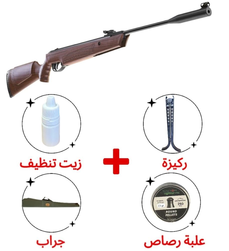 5- إكسسوارات مرفقة: يشمل العرض مجموعة من الإكسسوارات مثل ركيزة وإشارة الرماية وعلبة زيت لتحسين تجربة الاستخدام.