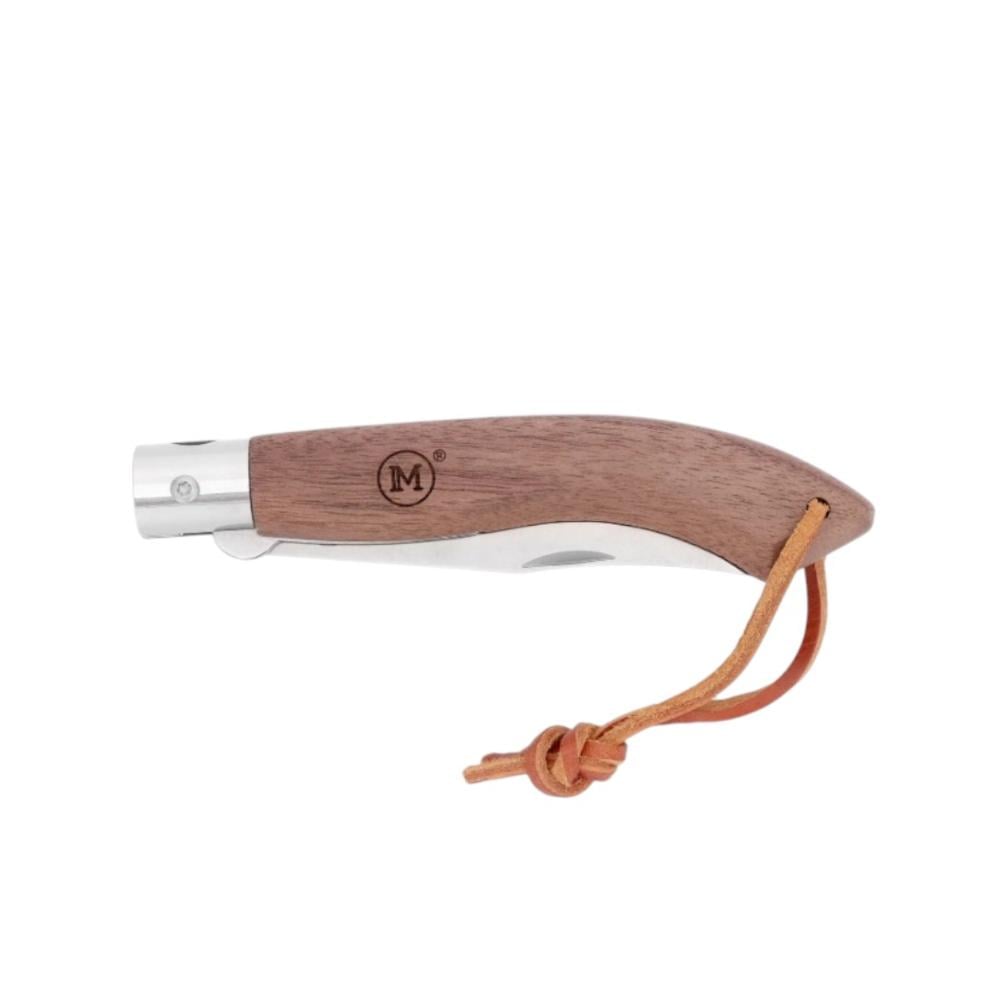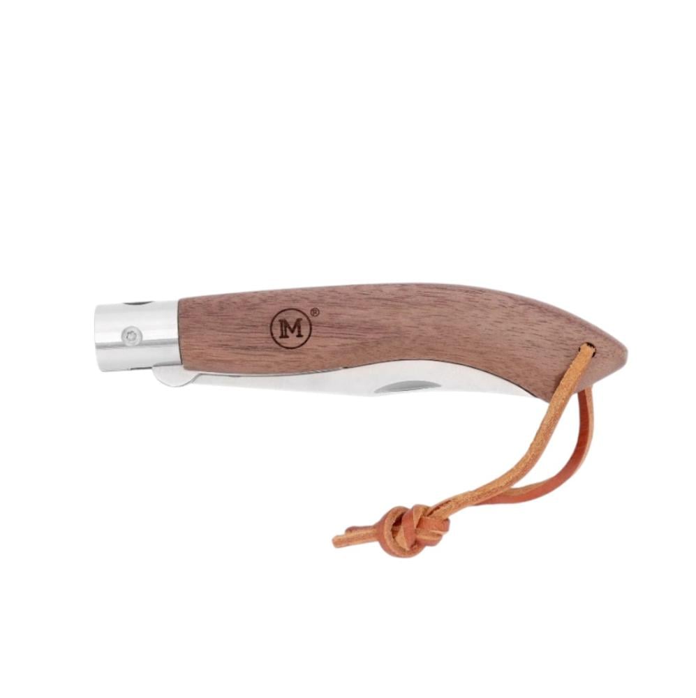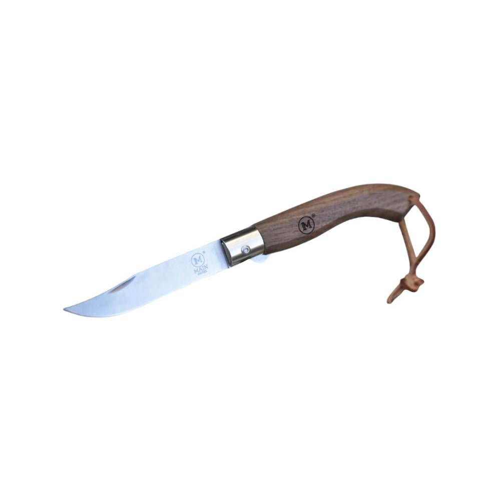 سكين جيب من American Line بمقبض من خشب الجوز وحلقة جلدية.